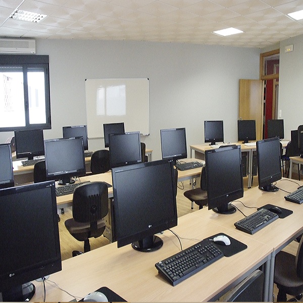 Las aulas están acondicionadas conforme a las exigencias docentes, con equipamiento actualizado y espacios versátiles que permiten tanto la formación teórica como práctica. Disponemos además de un aula informática equipada con ordenadores de última generación, ideal para cursos de informática, formación digital y apoyo al estudio.